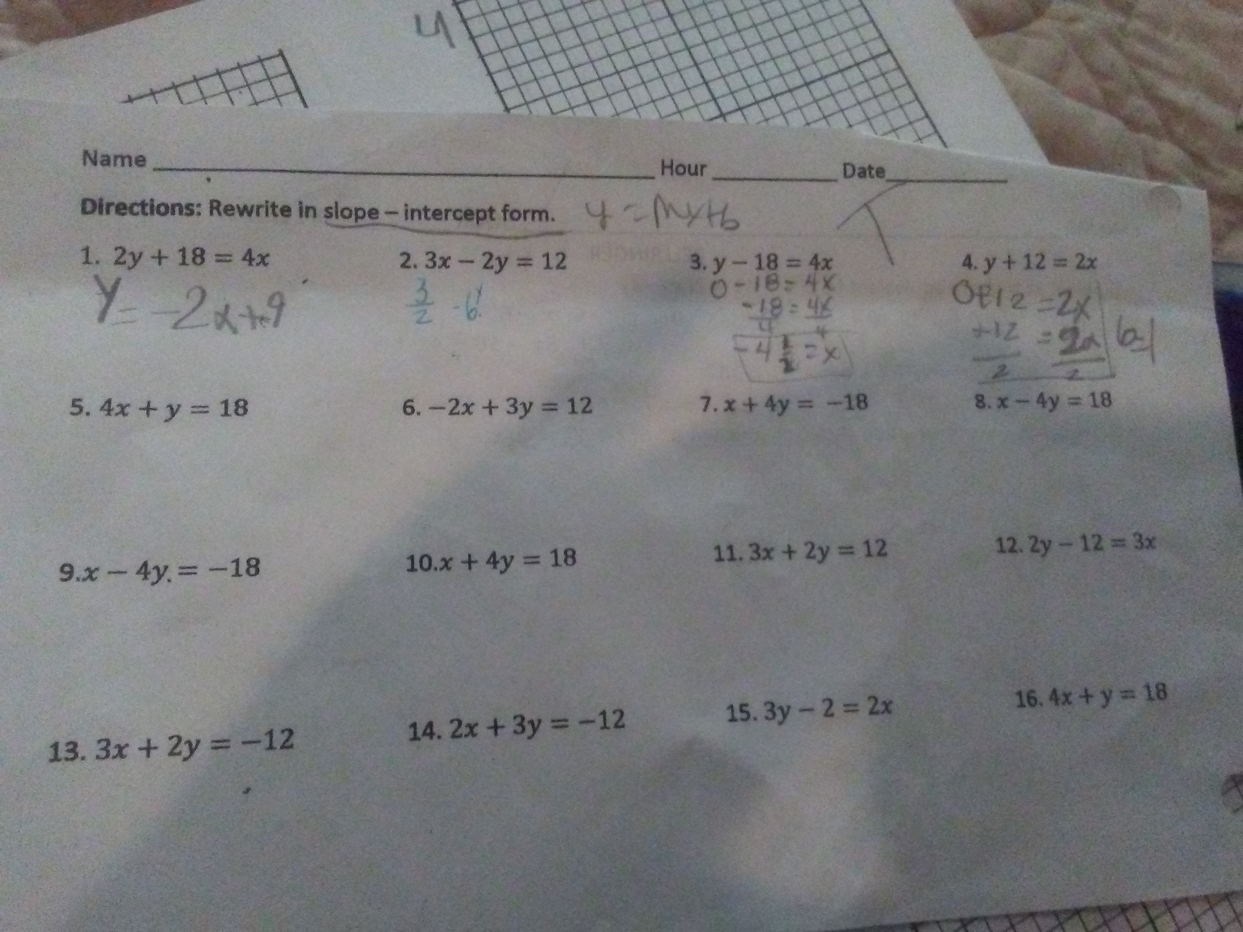 Second step is to change the 2y into y. You do that by dividing everything by 2. So 2y=4x-18 becomes y=2x-9