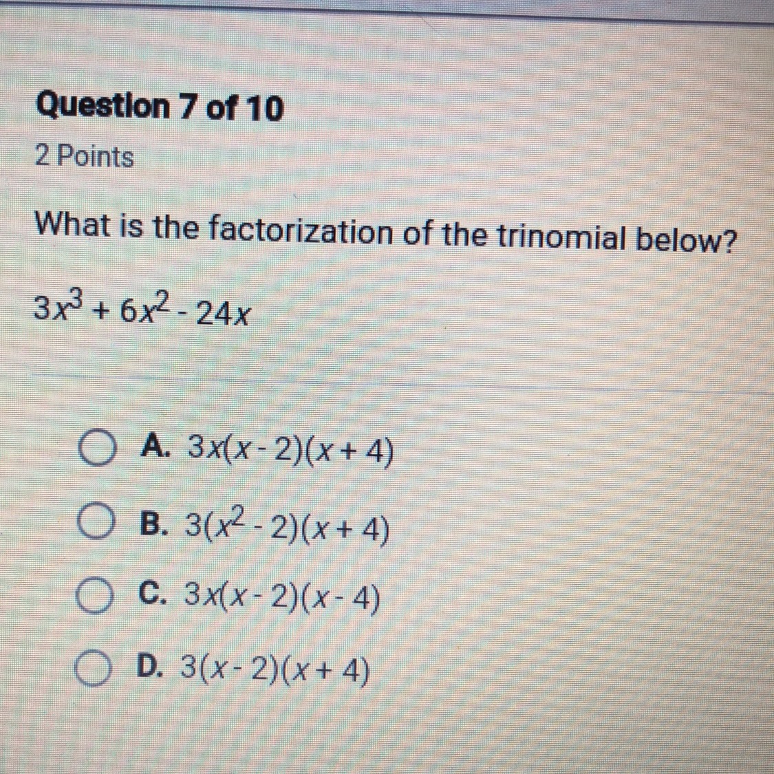 so your answer from 1️⃣and 2️⃣ is (A) 3x(x-2)(x+4).