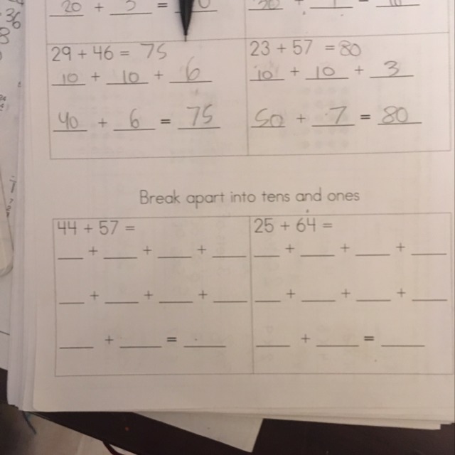 The Two questions below is that I need help with. I need to break apart the numbers into tens and ones