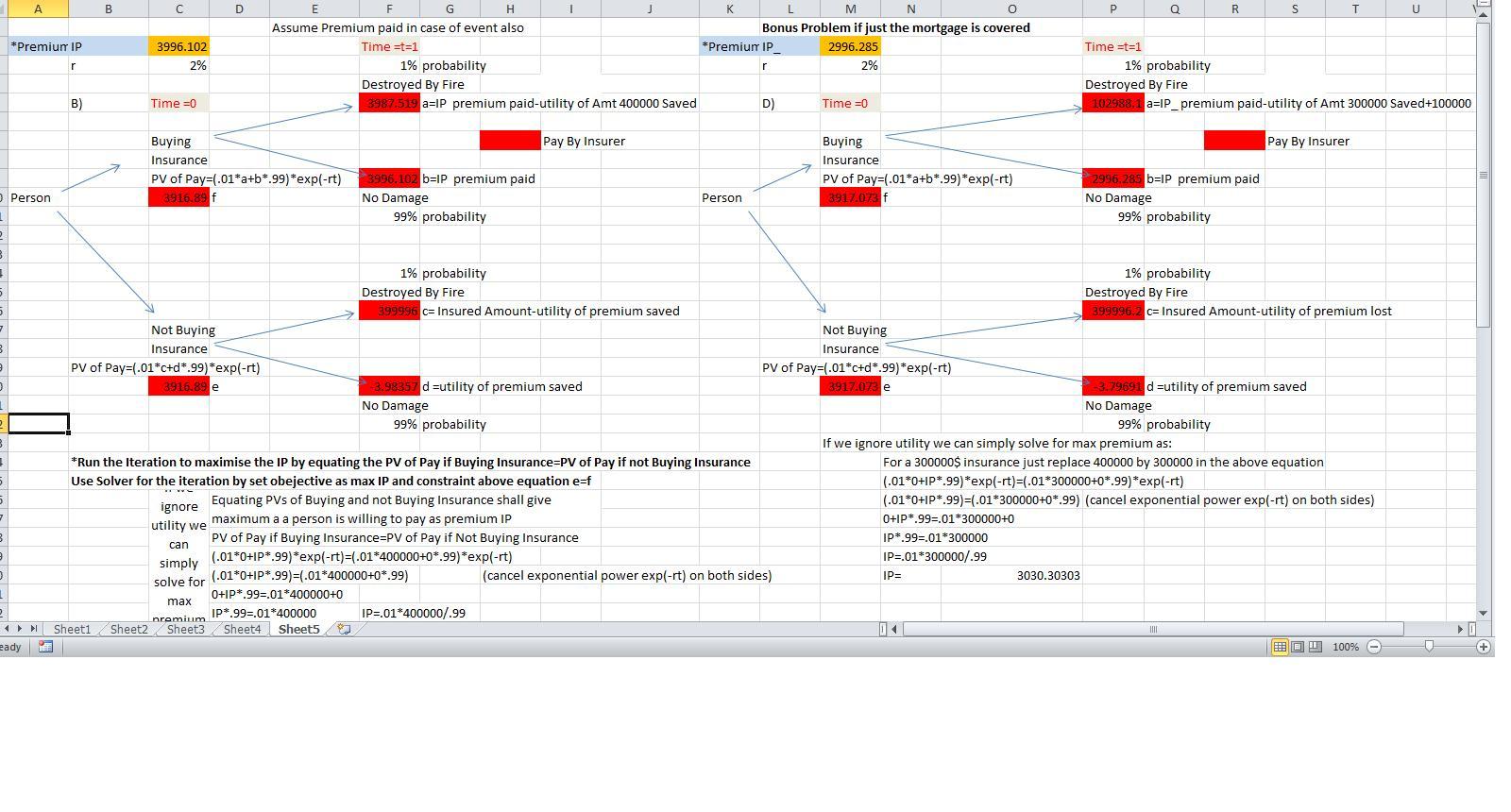 (Hint: in this case, the house is under-insured. Inother words, with the $300,000 insurance, if the house is totally destroyed by fire, the person willsuffer a loss in the net asset because the insurance covers only the mortgage not the full net equity of the house, and the maximum insurance premium the person would be willing to pay will need to be determined through numerical iterations).