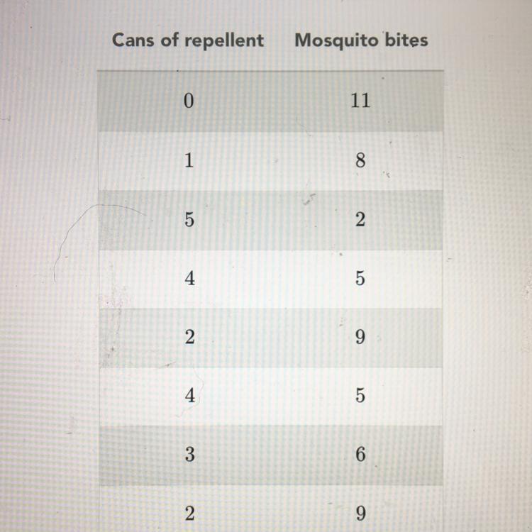 Let x represents the number of cans of repellent and y represents the number of mosquitos,