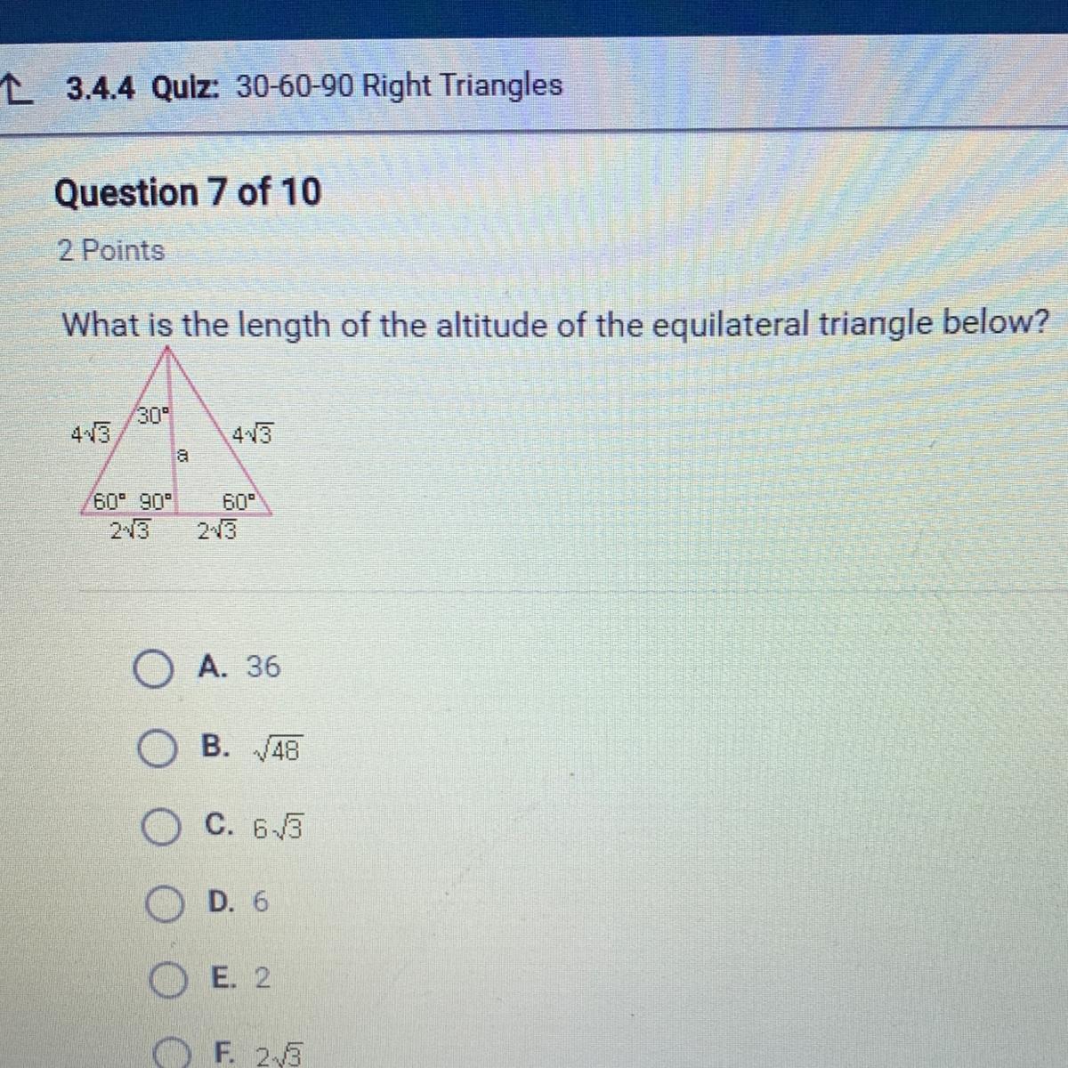Given the equilateral triangle shown in the figure, you need to find the value of the altitude "a".