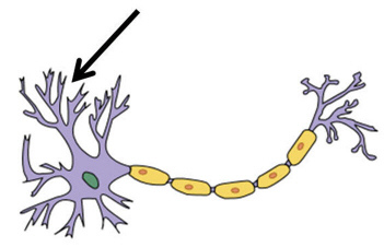 Q2. On the photo, arrow shows D. <span>The dendrites carry the electrical impulses from the signal receivers to the cell body.</span>