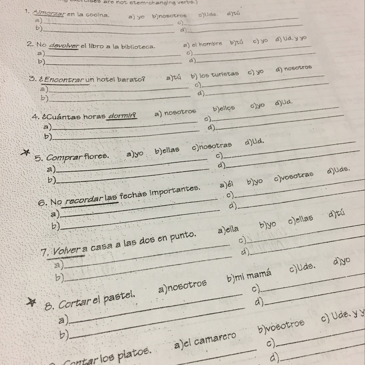 Question 4: Los padres y yo somos bailarines