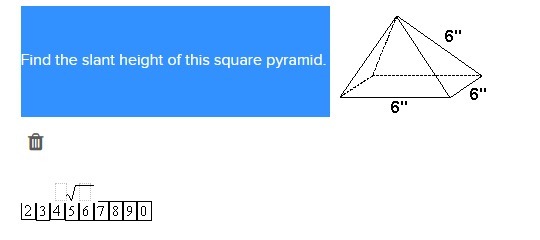 I don't know if i am supposed to use decimals, but the slant height would be 6.71