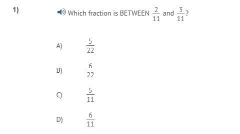 1) We can automatically throw out D) and C) because they go way beyond 3⁄11. Answer choice B) is an equivalent fraction of 3⁄11 because both denominator and numerator were multiplied by 2, leaving the only possible answer of A). Besides, whenever we have a one-term-numerator range difference like 3⁄11 and 2⁄11, we double the denominator and pick the numerator term that is the SUM of the two given numerators in your exercise, which is what you see here: