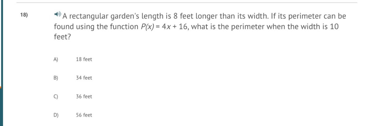 The answer is D- A(x)=25+10x