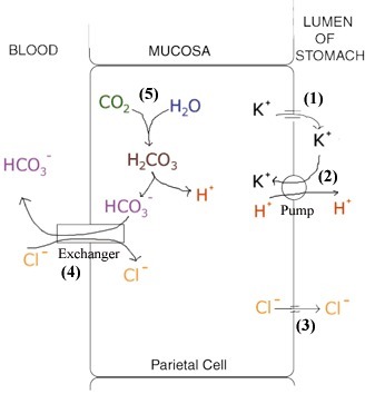 Well your and my stomach is made up of a stomach lining, protecting the rest of the internal organs from the acid. This diagram might help you understand how the cells and how your stomach forms HCL. <span>HCL breaks down proteins in your </span>stomach<span> to prepare them for digestion (like the proteins in milk and meat) and kills bacteria that enter your </span>stomach. It converts the inactive enzyme <span>pepsinogen </span>into the active enzyme pepsin. If you need more information please feel free to ask!
