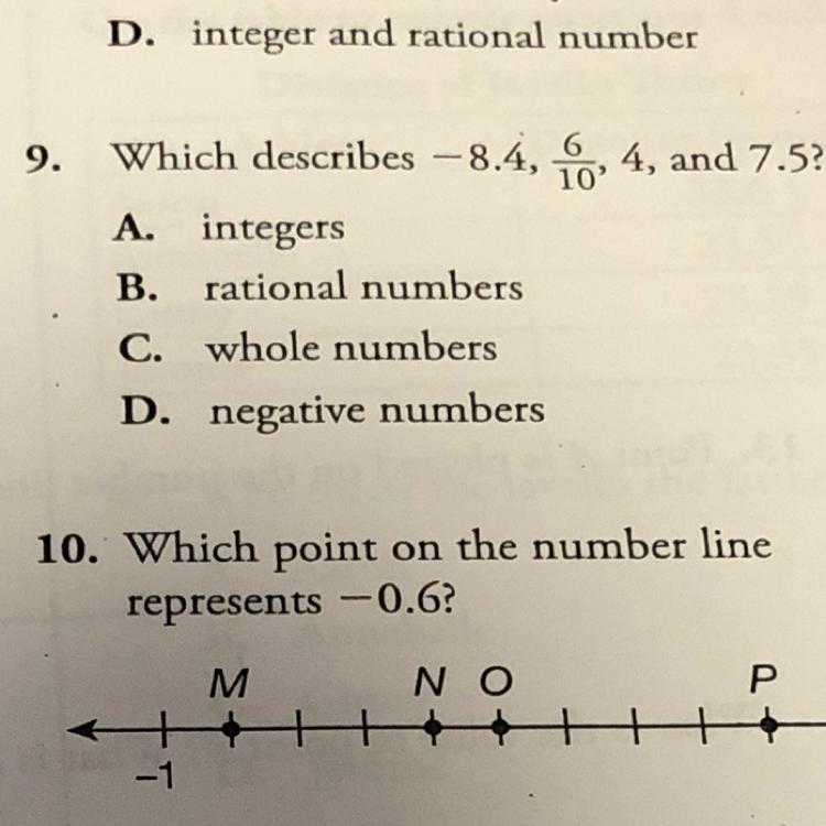 9.) A. integers