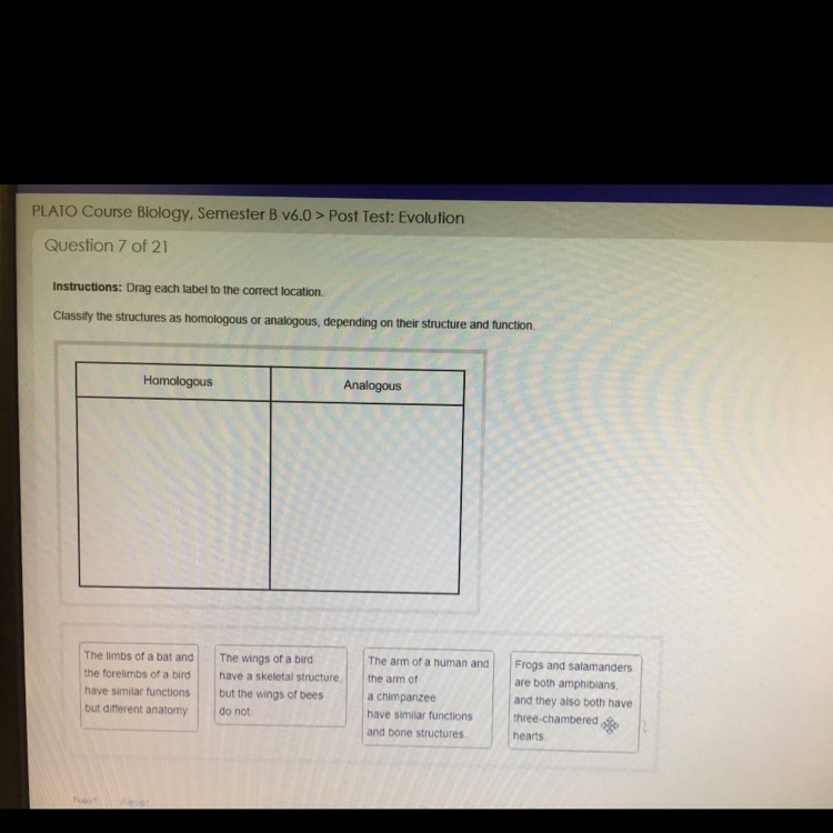 1) The limbs of a bat and the forelimbs of a bird is an example of Analogous structures