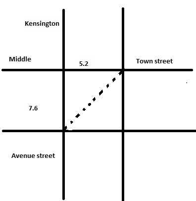 Answer: The distance between two opposite corners of the intersection is 9.2 meters.