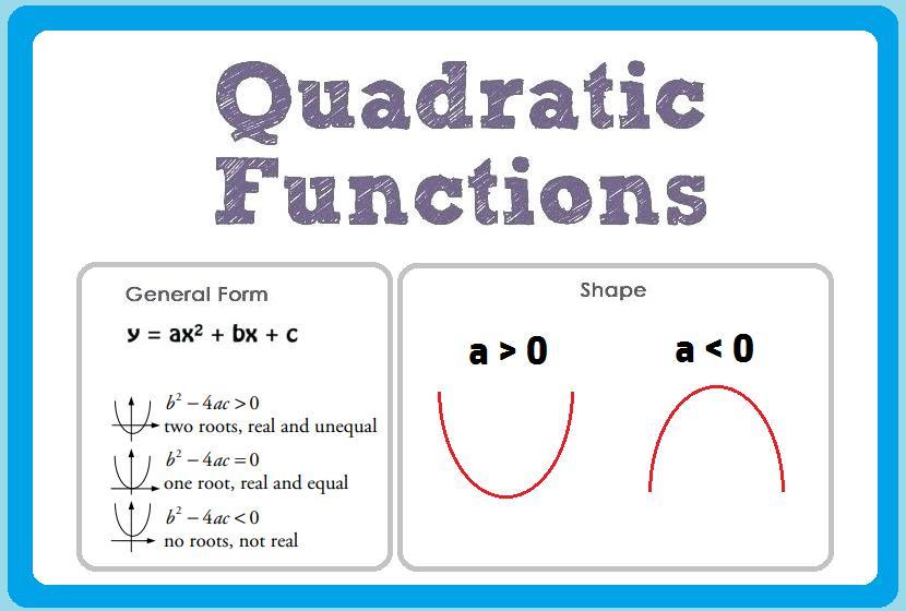 The quadratic function has the following general equation: