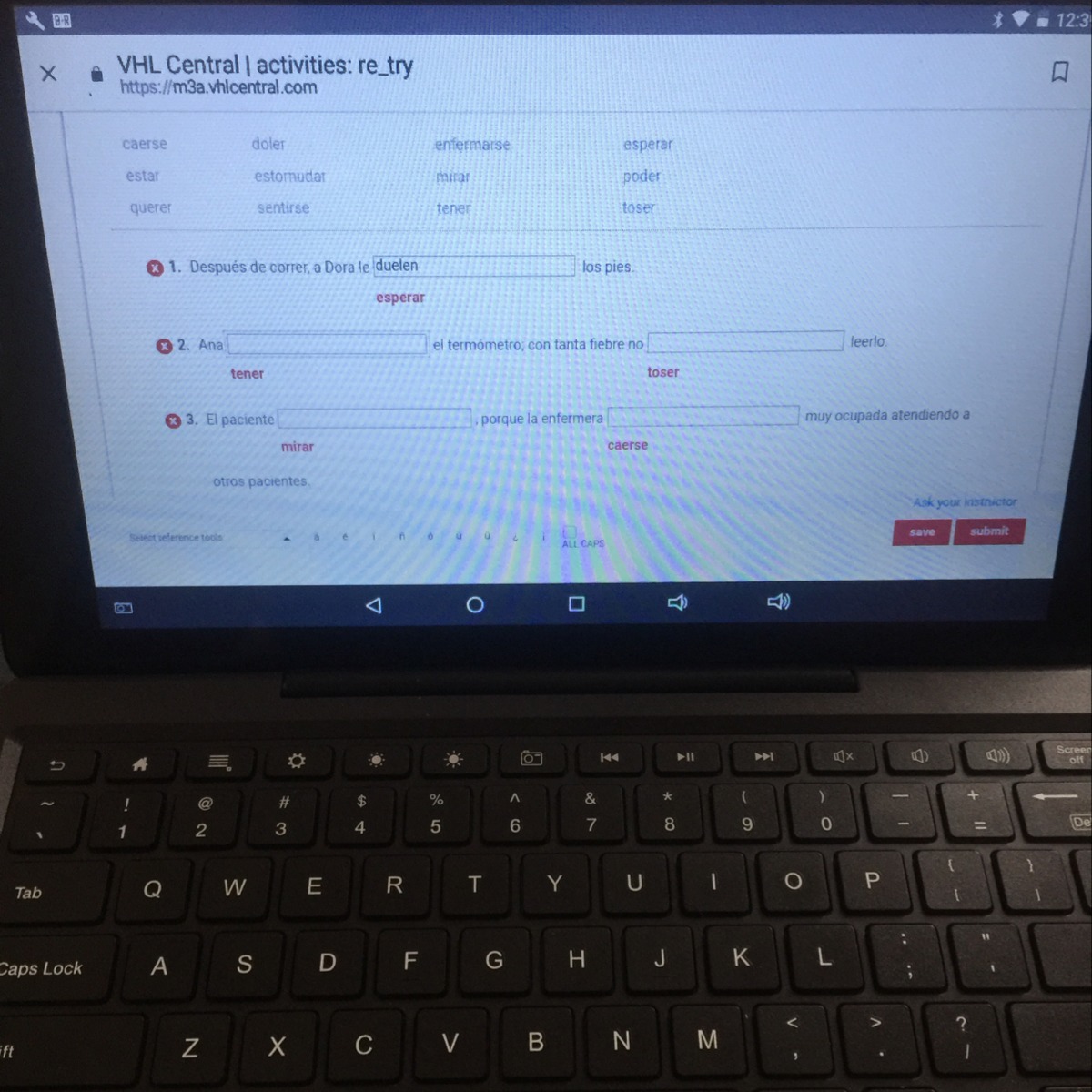 in number 9 just put whats in blank " te afeltas"