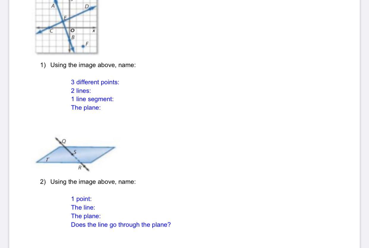 2)One Point: <em>On the Plane, one point is point S. Q and R are also points, but the question only asks for one point.</em>