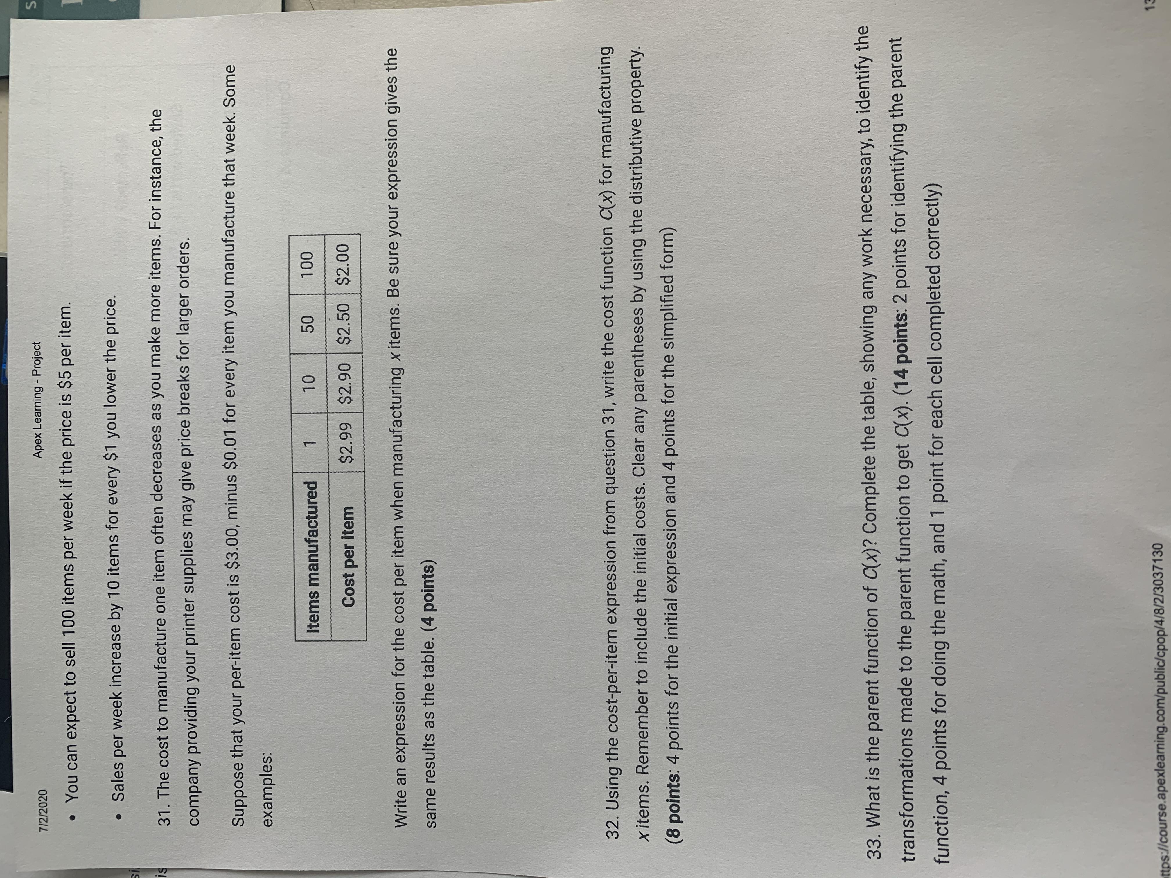 You can choose two random x variables such as how i selected 2 and 4. if you change the variable x to those values you can solve for y or in this case f(x).