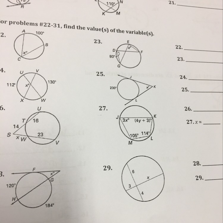 , values of x are
