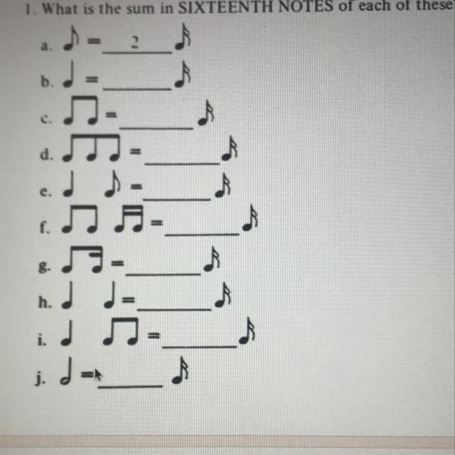 j. A half note is 8 sixteenth notes.