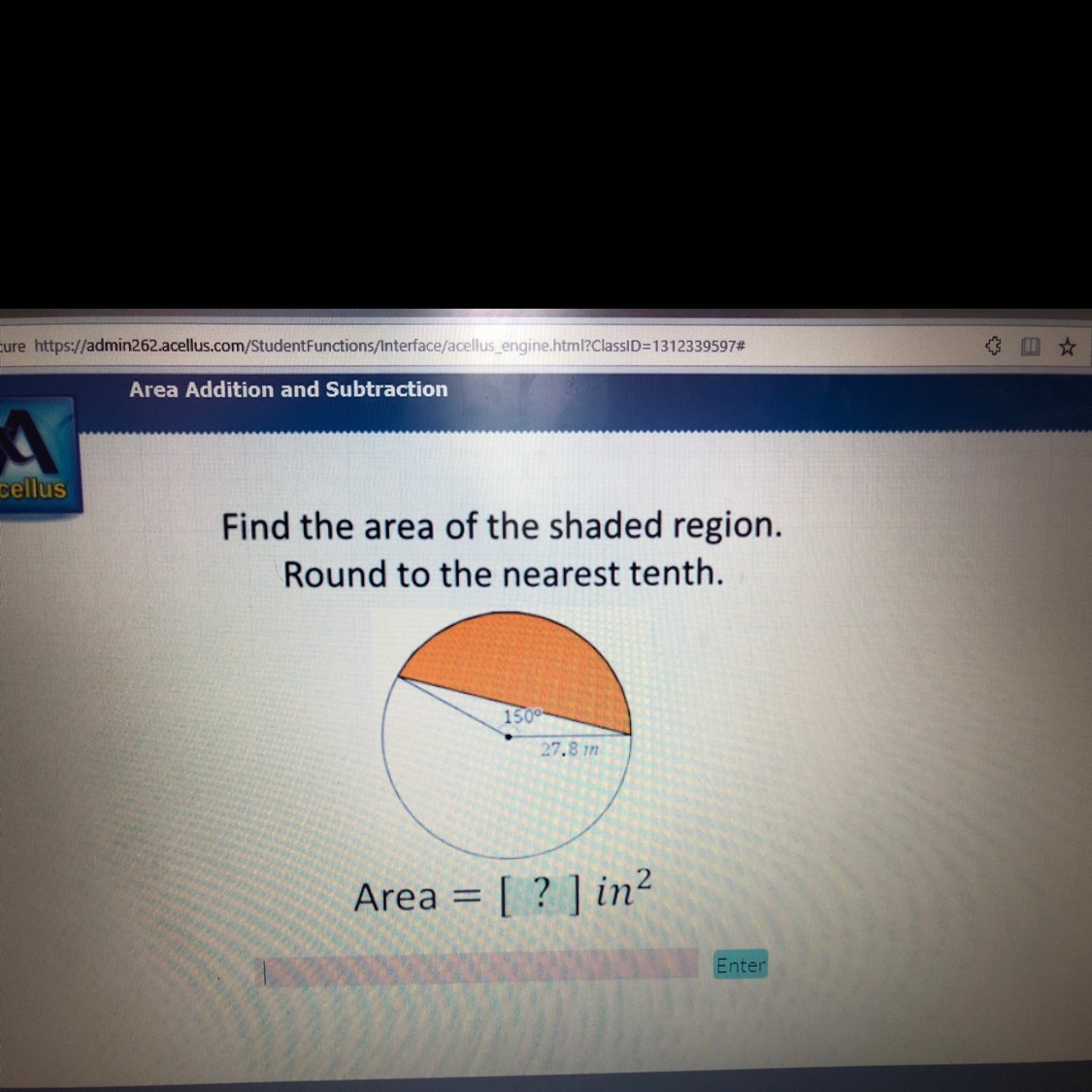 = (150 / 360) (3.14) (27.8)^2