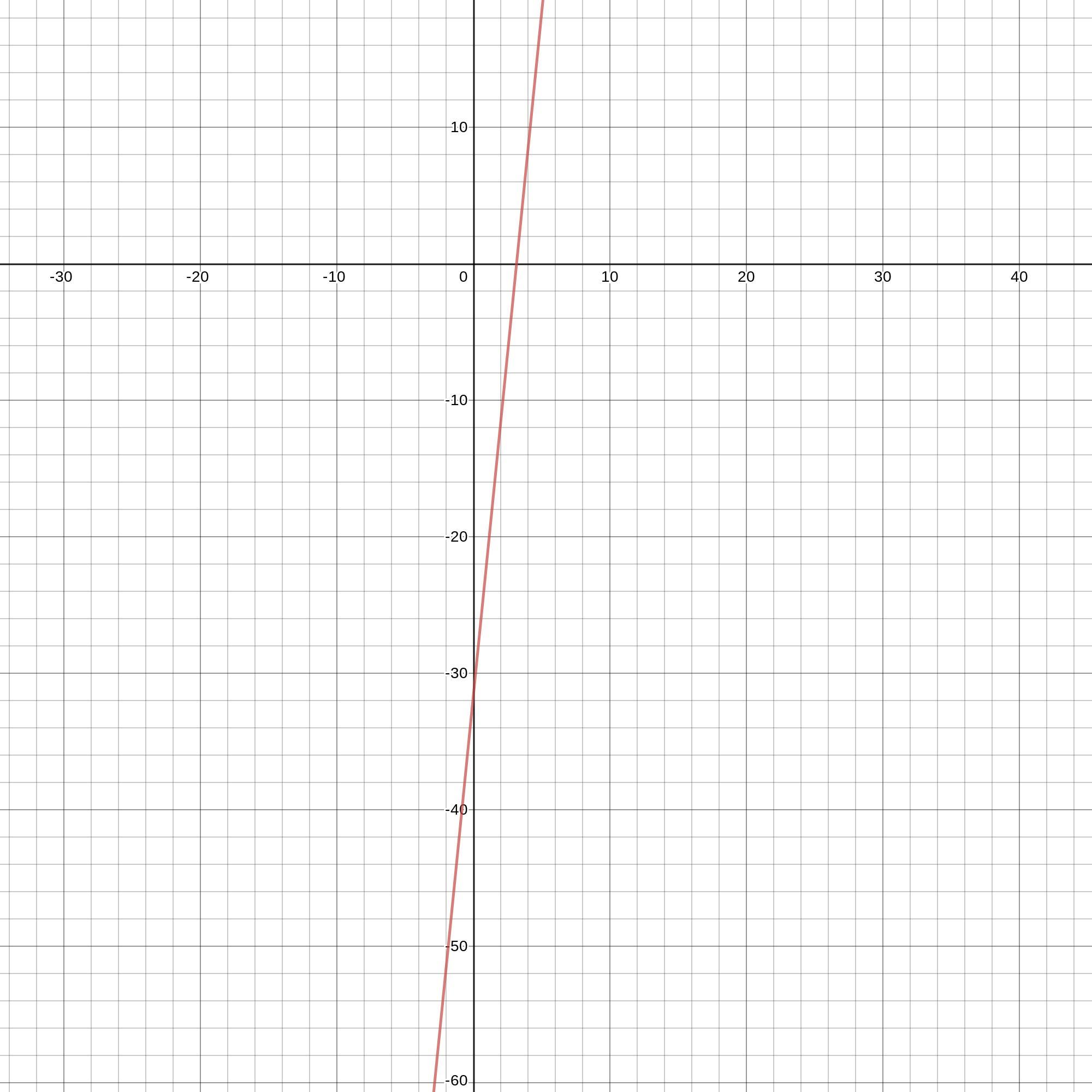 The x-intercept of the line is at (3.2,0) The y-intercept of the line is at (0,-32)