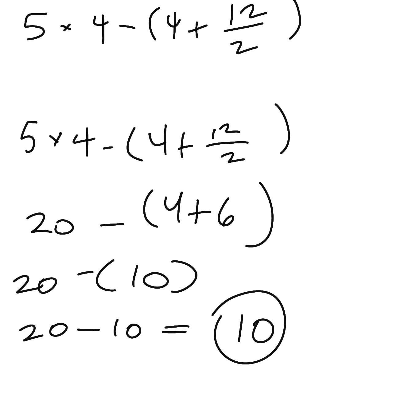 5 * 4 - ( 4 + 12/2)
