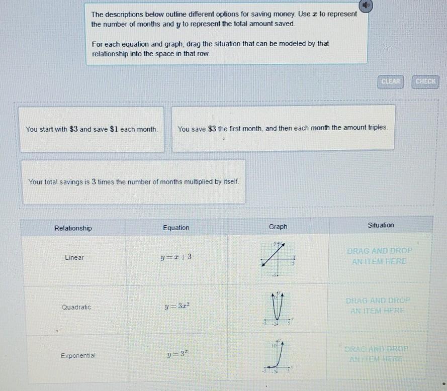 Quadratic: Your total savings is 3 times the number of months multiplied by itself.