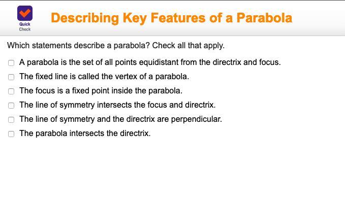 Which statements describe a parabola? Check all that apply.