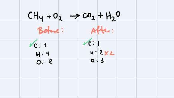 To balance a chemical equation we need to make sure that the number of atoms of each element before and after the reaction occurs is the same.