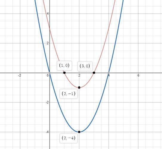 Which statements about functions g(x) = x2 - 4x + 3 and f(x) = x2 - 4x are true? Select all that apply.