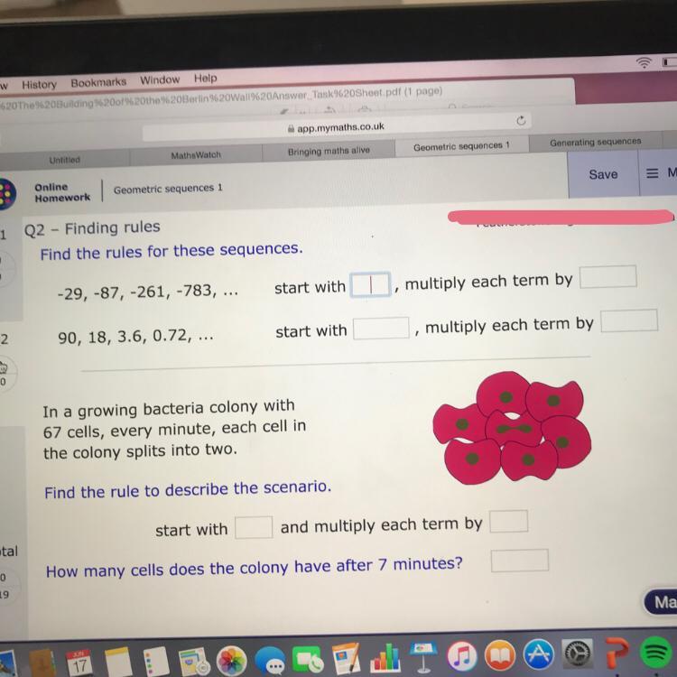 The colony has 67×2×2×2×2×2×2×2= <u>8576 cells after 7 minutes</u>