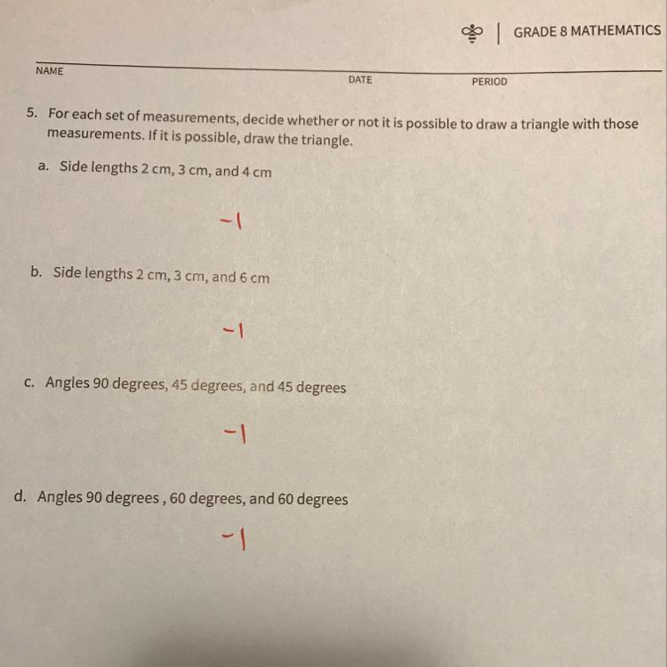 So for A a triangle cannot be drawn.