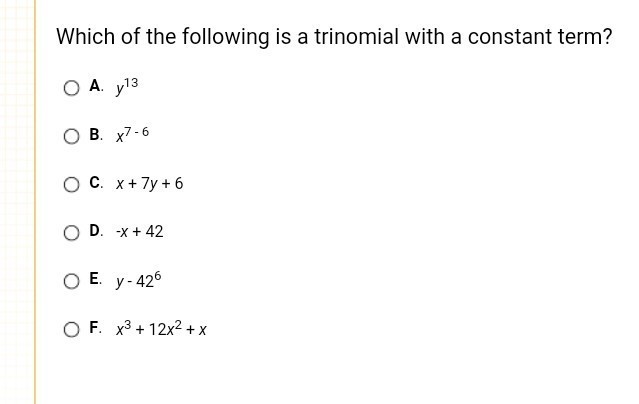 Finally, multiply the last terms; in the first one, that's -6 and in the second, that's -7: