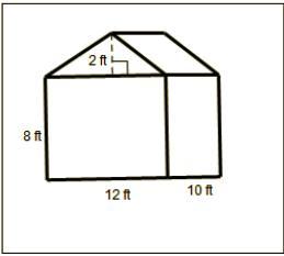 Ben looks at his plan and realizes that his building can be viewed as a triangular prism sitting on a cube.