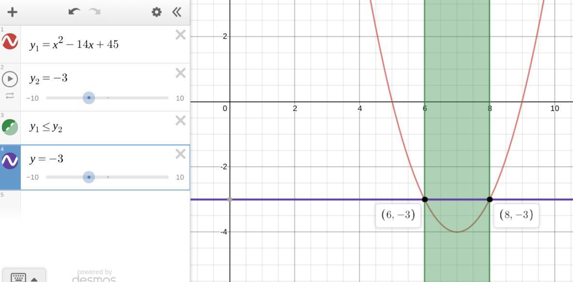 The solution interval is shown in green on the attached graph.