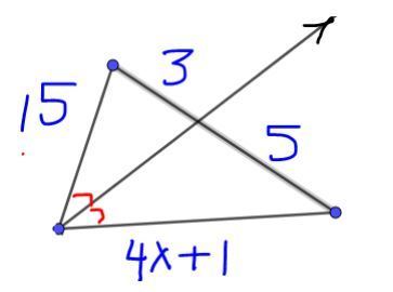 We have been given a triangle and we are asked to solve for x using angle bisector theorem.