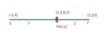 Suppose the Point M(x,y), divides the Line Segment Joining E (-2,4) and F (5,10) in the 7:3 ratio.
