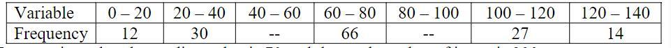 Given: Total Frequncy = 200 , Median = 46