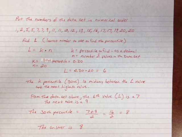 Therefore, The value of the 30th percentile of the following set of data is 8.