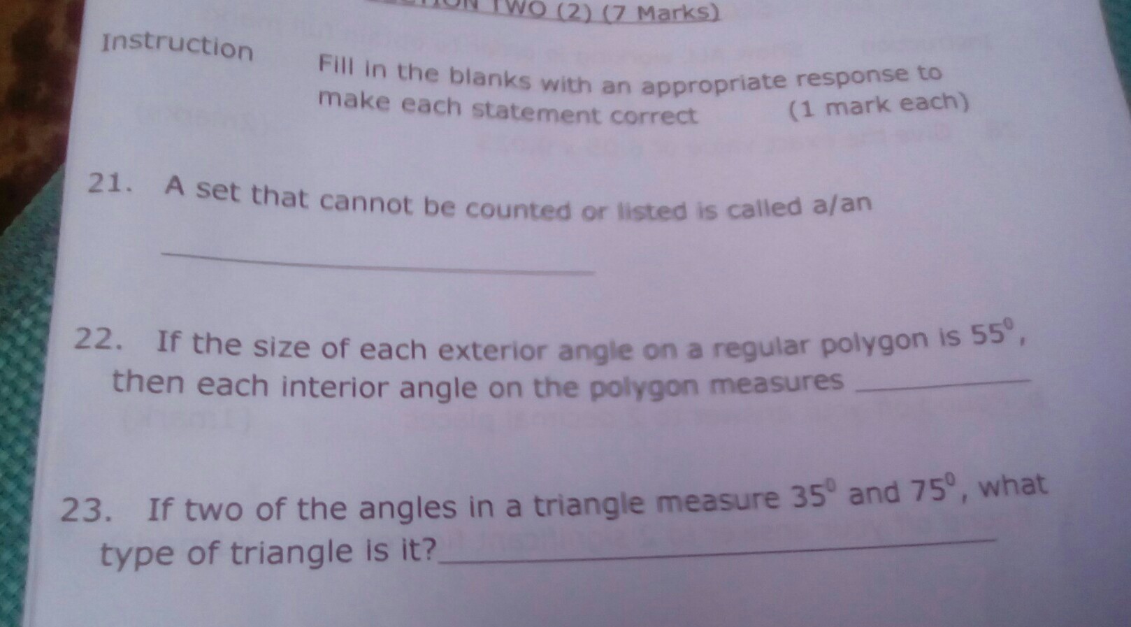 23. The answer would be a scalene triangle. Not all the angles are the same degree.