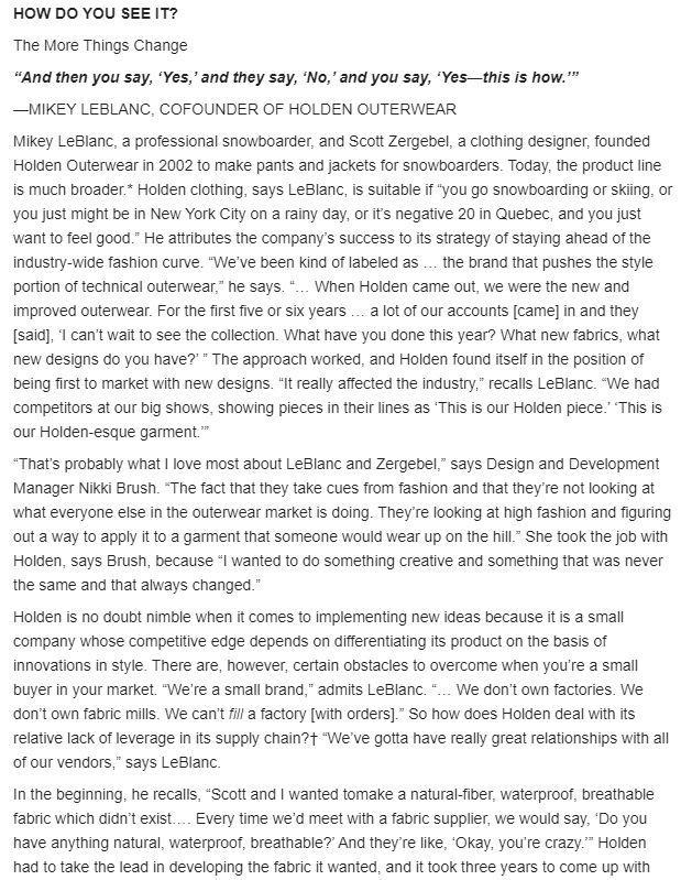 According to the case study, Manager Nikki Brush tells of how they introduce new ways of doing things by being able to encourage and push their vendors in a way that they are not used to. She does admit though that it is getting harder to do so because the vendors are seeing their costs rise and don't want to make goods that people might not want to use because they are new and untested.