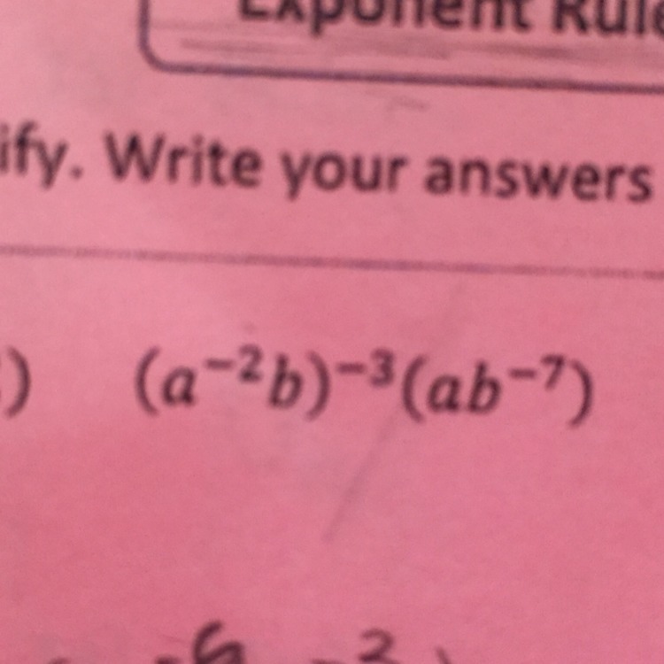 so for the question at hand: (a^-2 * b)^-3 * (a * b^-7)