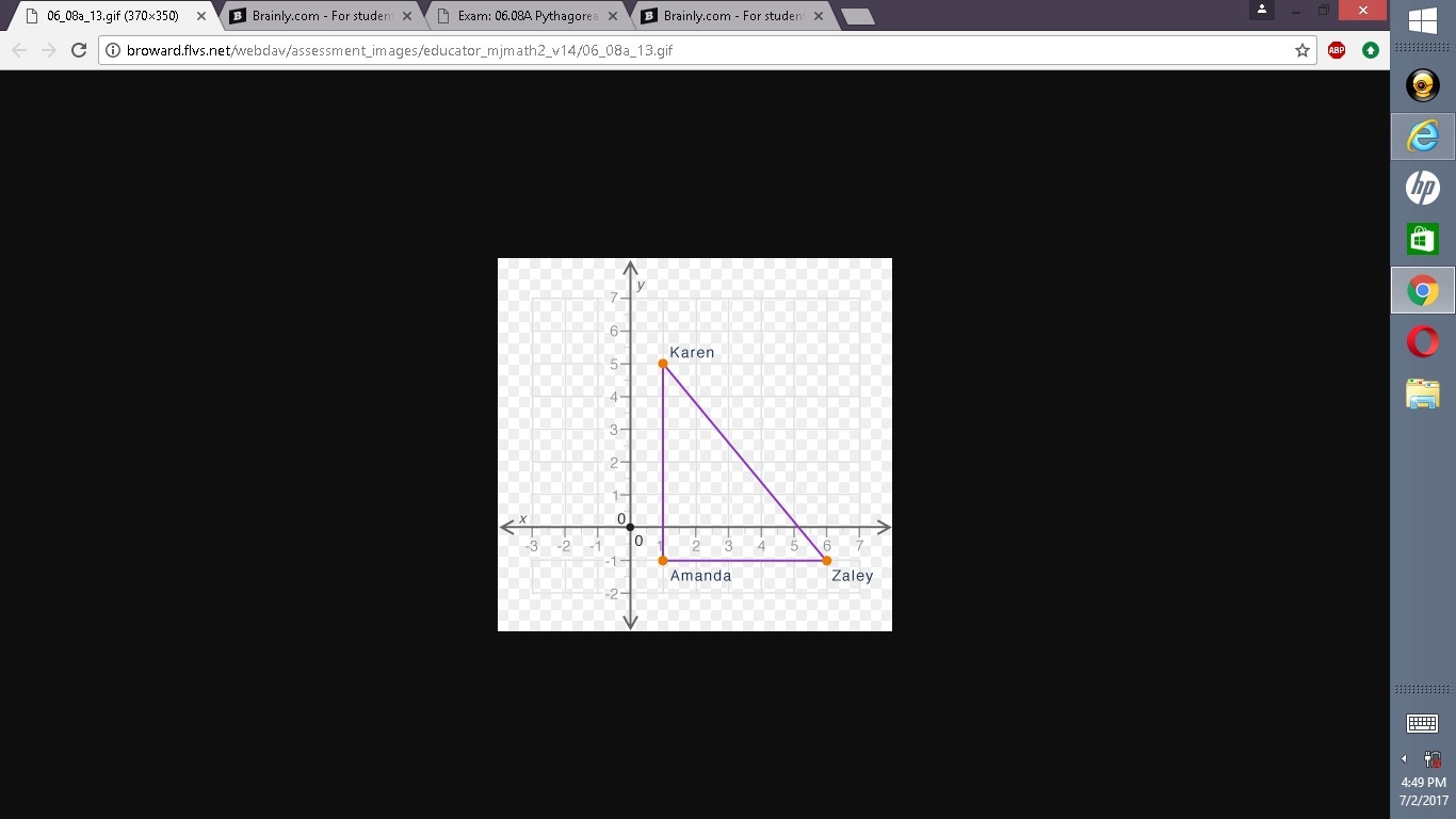 A and B are the legs, so Amanda's distance is A and Zaley's is B