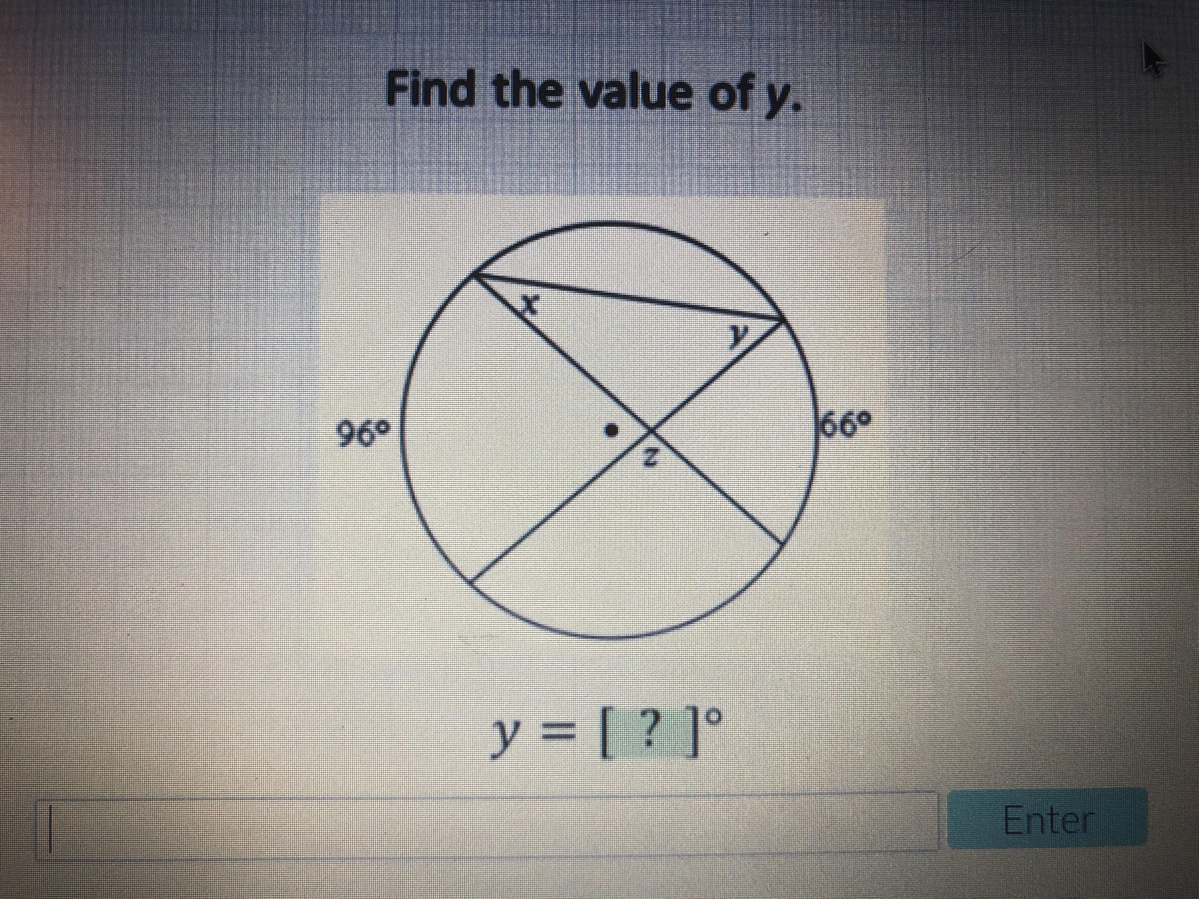 x = 30 (vertical angles with the other angle of triangle on the right)