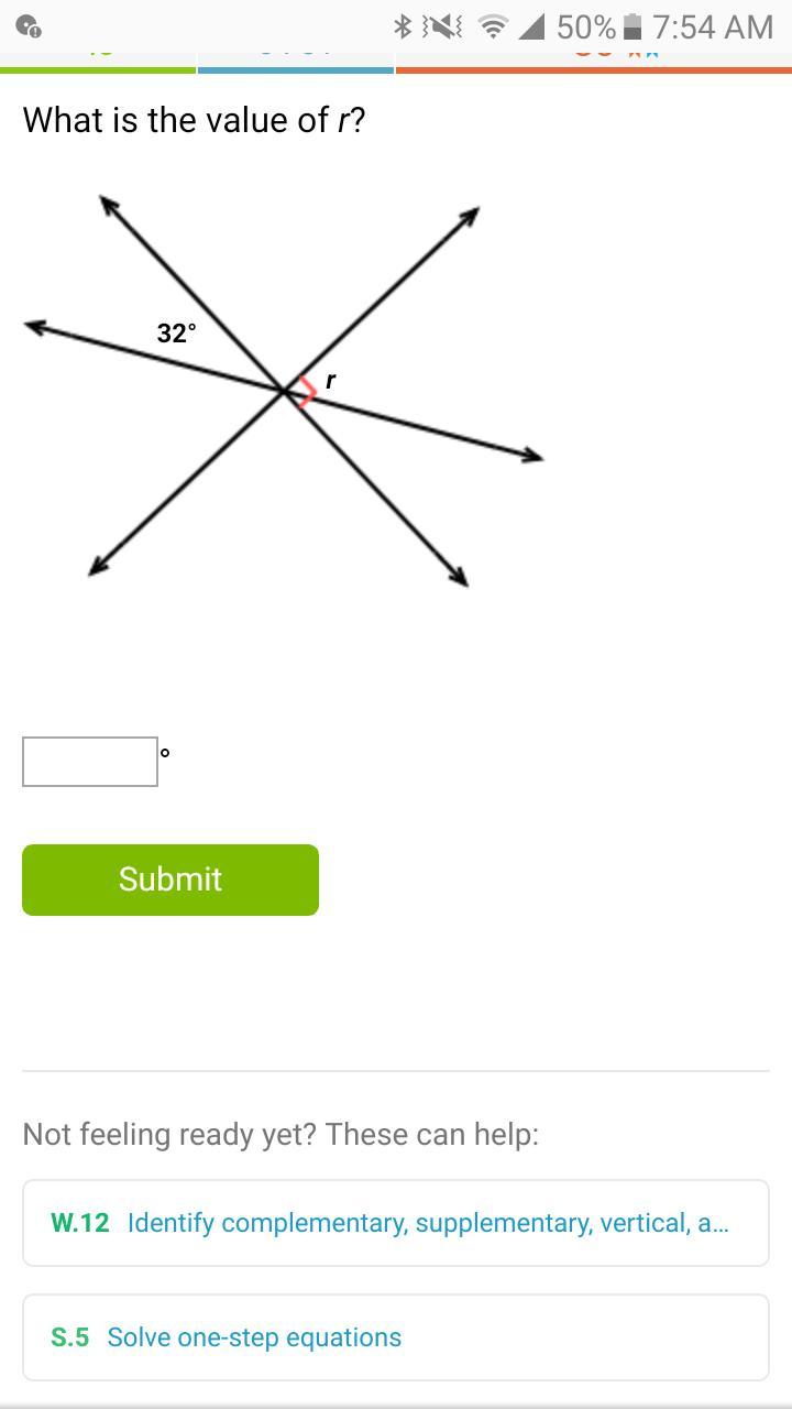 Angle x and 32° form vertical angles (which are congruent) so x = 32°