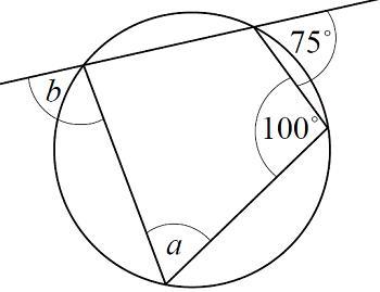 S0 b = 180 - 80 = 100 degrees (adjacent angles are supplementary).