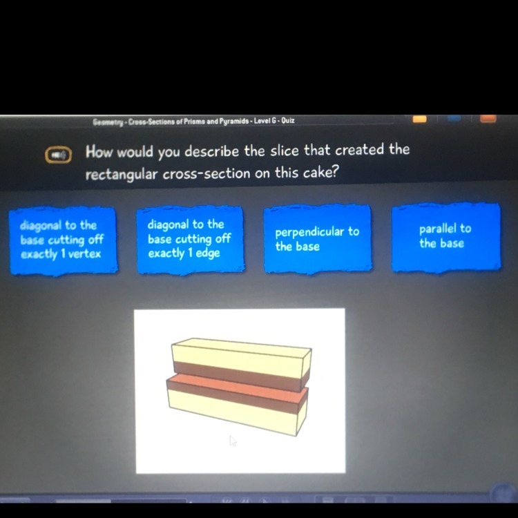 Hence, here we have a cake in shape of a rectangular prism or we may say a cuboid so in order to get the rectangular cross-section we need to cut this cake parallel to the base.