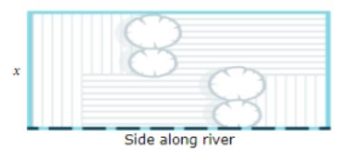 In the figure attached, a plot of the problem is shown. Let's call y the length of the side that parallels the river