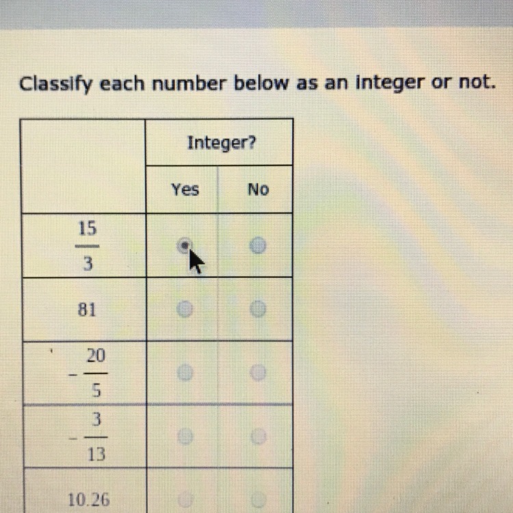 Classify each number below as an integer or not