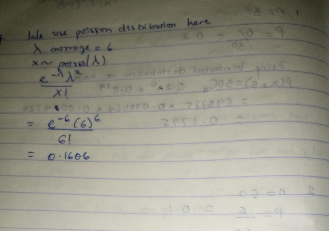 d. Using Poisson, the chance of 6 arrivals is estimated as:________