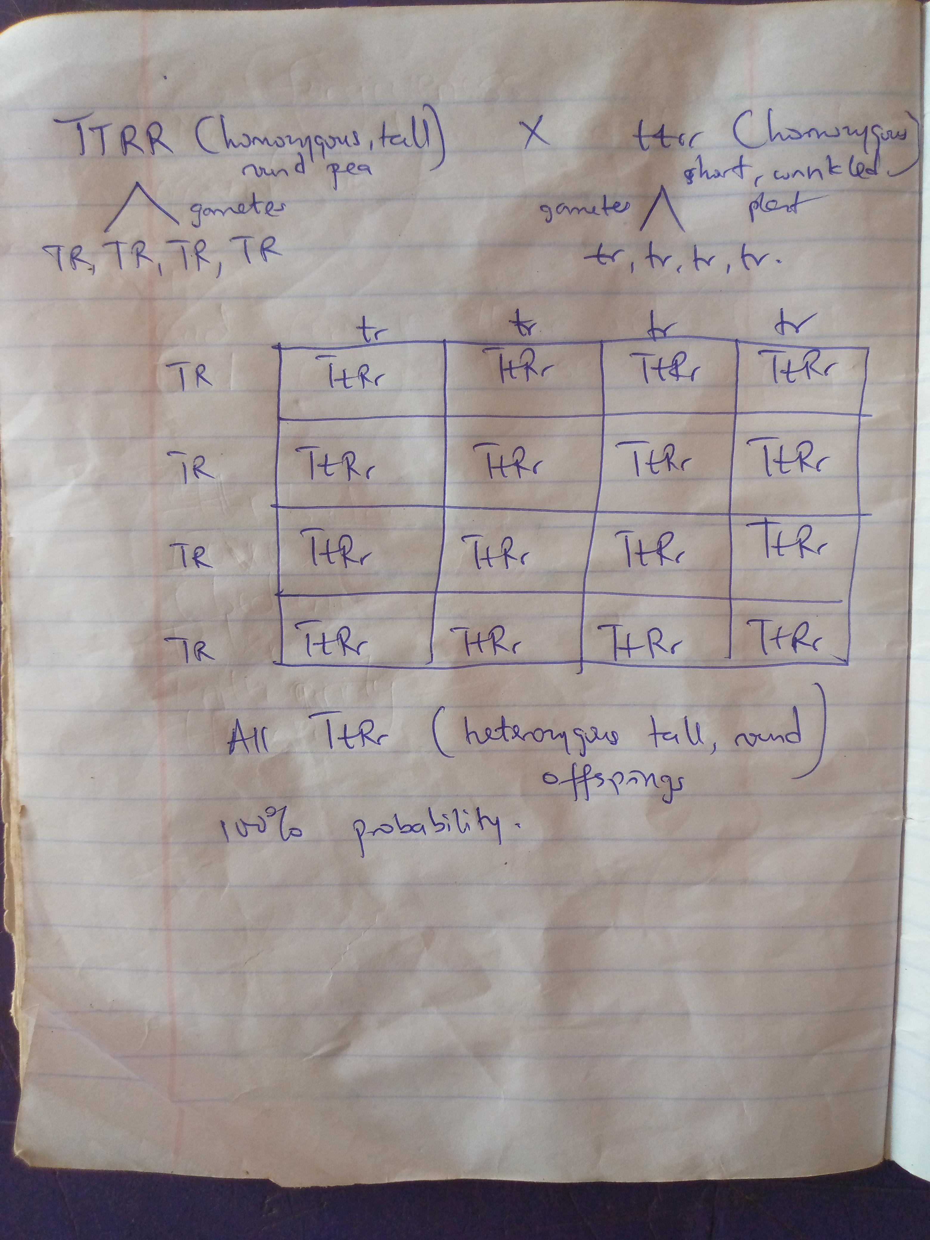According to this question, an h0m0zygous tall, round pea plant (TTRR) is crossed with an h0m0zygous short, wrinkled pea plant (ttrr). The following gametes will be produced by each parent: