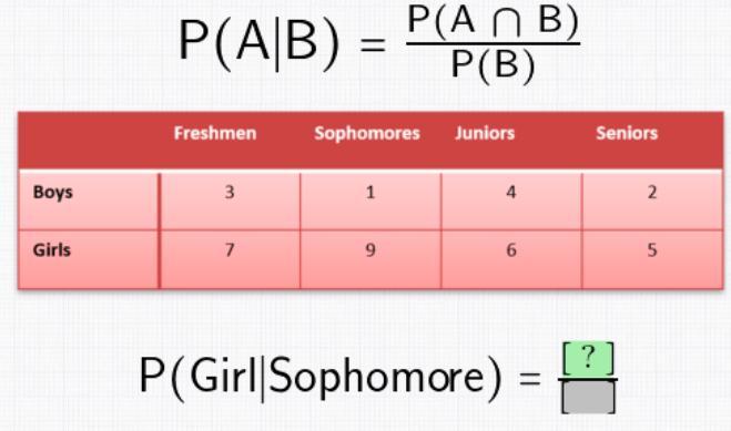 Prob(girl/sophomore) = 9/37